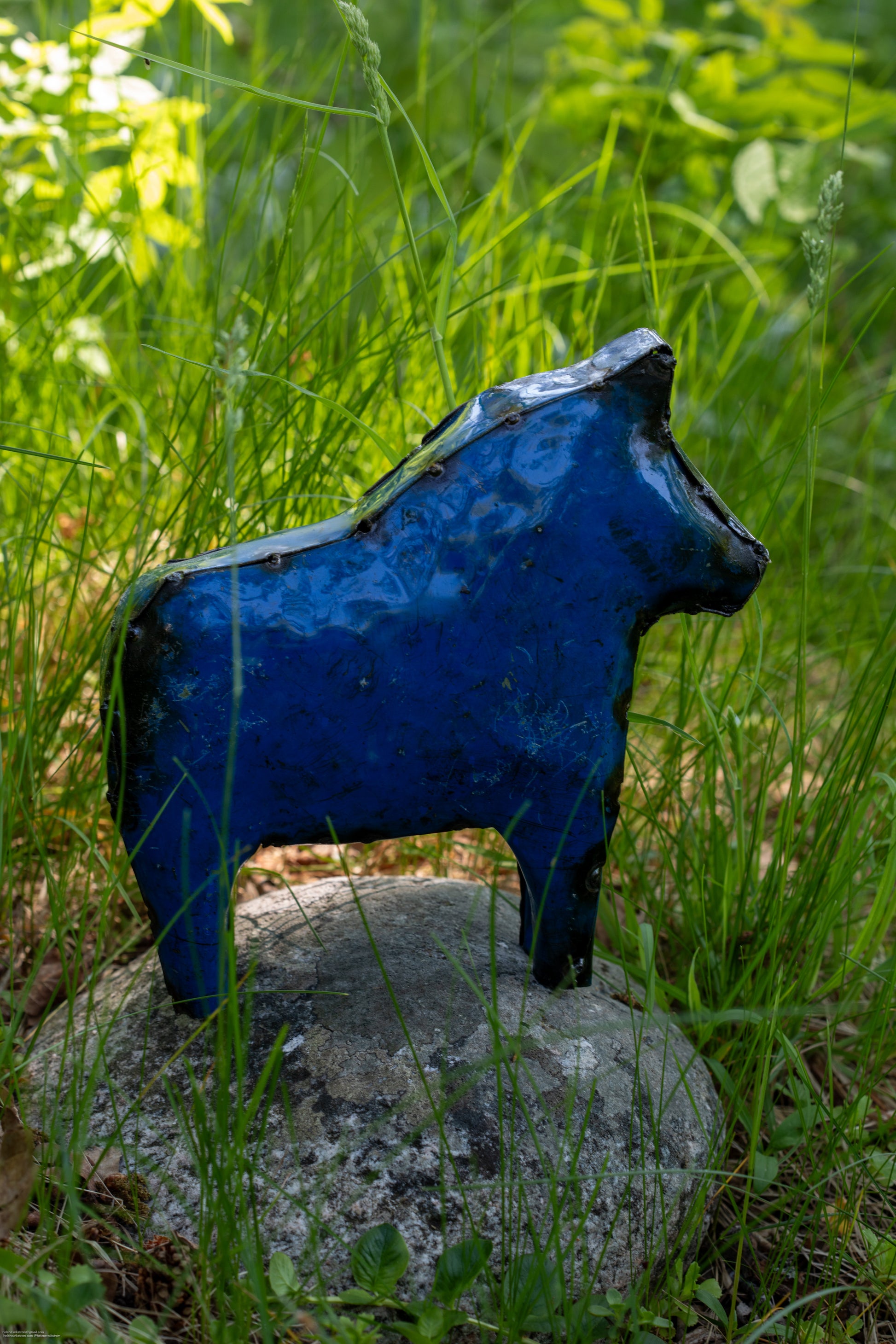 Metallskrot som oljefat, kylskåp, bildelar är hopsvetsad, målad och sedan lackad och tål att stå både inomhus och utomhus. Underhåll den med till exempel rå linolja för att undvika rostbildning.