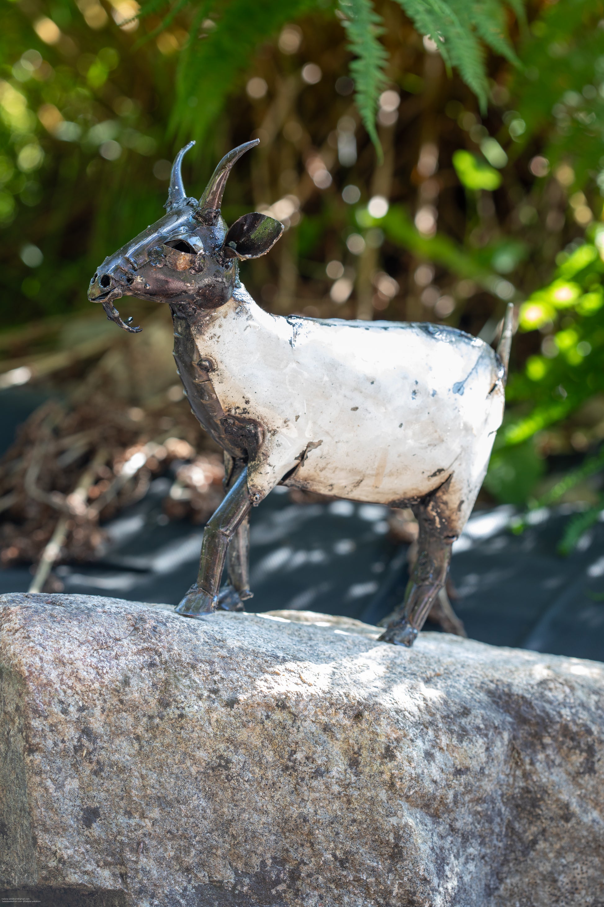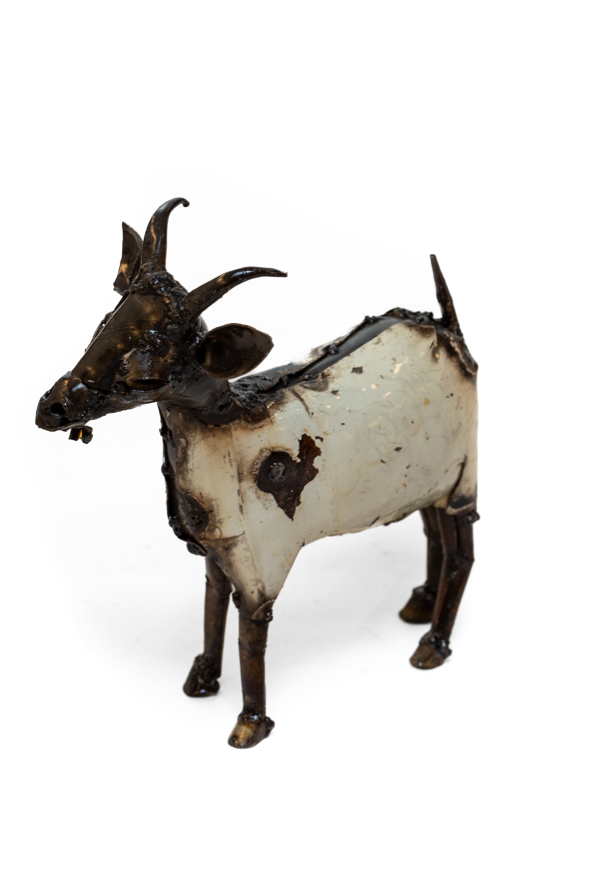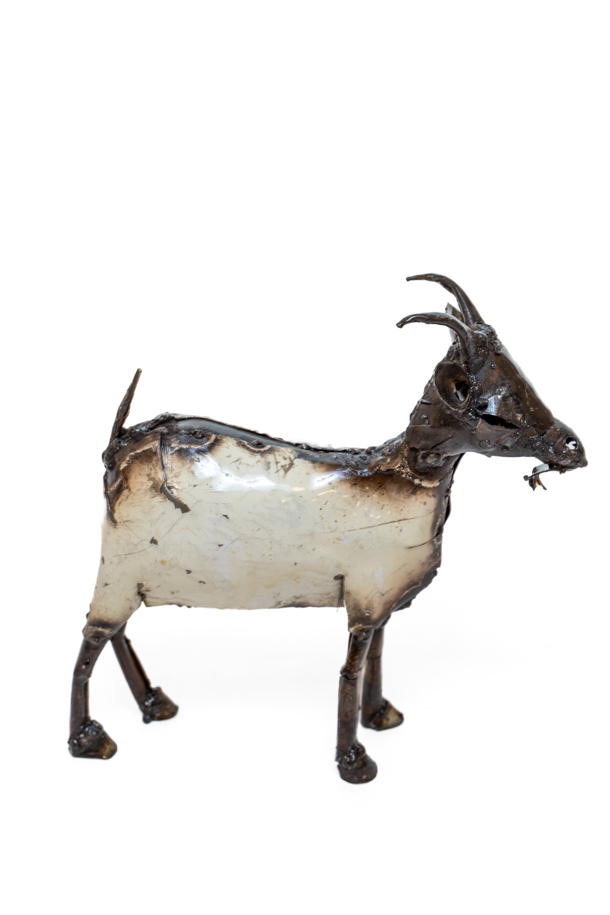 Geten är gjord av ett gammalt kylskåp. När du köper den bidrar du till en bättre framtid för zimbabwiska konstnärer.