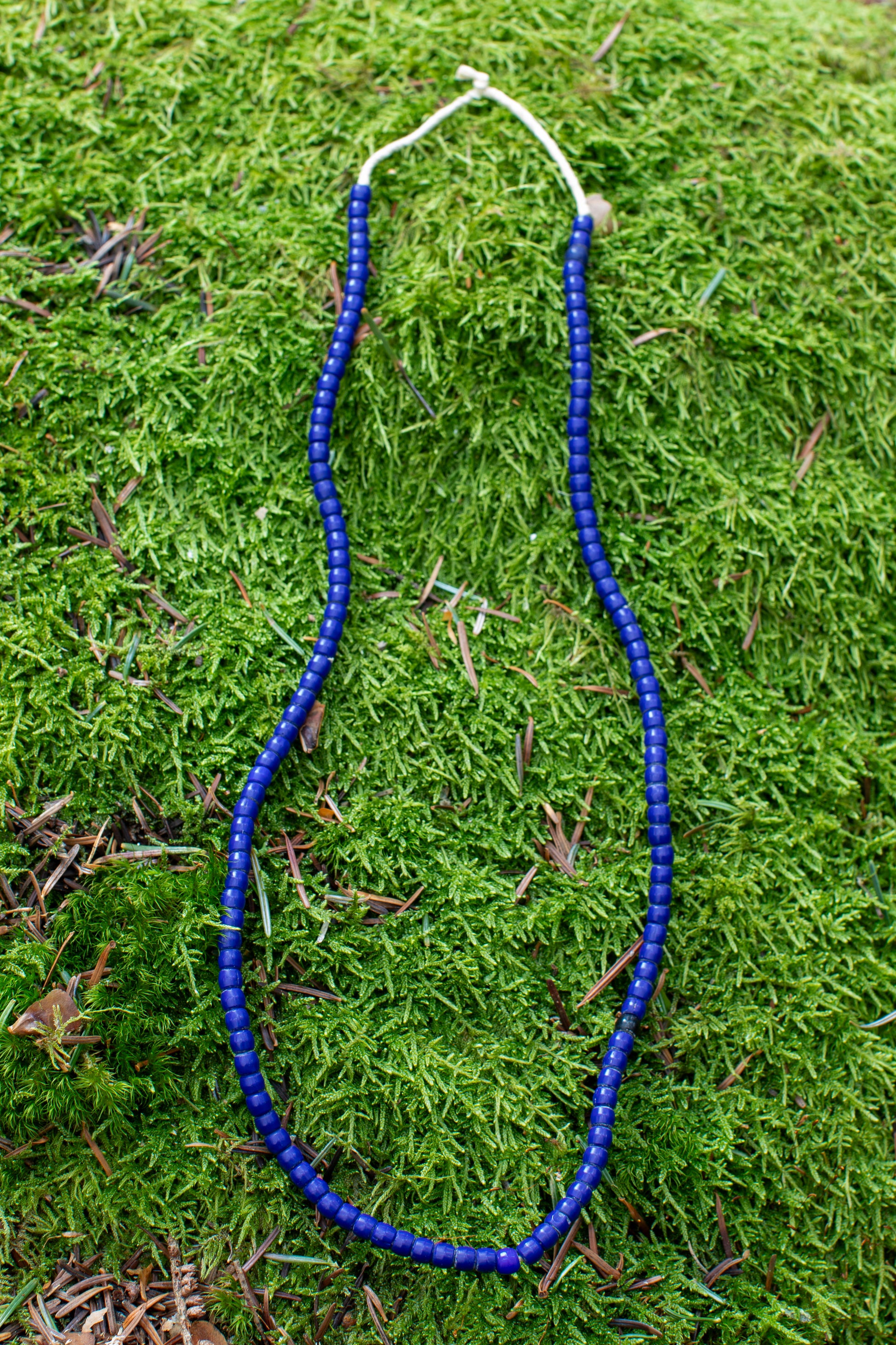 Halsband med vintage glaspärlor bär på en fascinerande historia. De antika venetianska pärlorna, som en gång kom till Afrika genom handelsresande från Italien och användes som valuta, har blivit en integrerad del av den afrikanska kulturen. Under århundraden har de symboliserat mognad, välstånd, skönhet, social status och identitet. Dessa specifika pärlor har spelat en roll i Turkanakulturen i norra Kenya. Räddade från skadade halsband, har pärlorna noggrant tvättats, polerats och återanvänts i dessa enkla, men eleganta halsband.