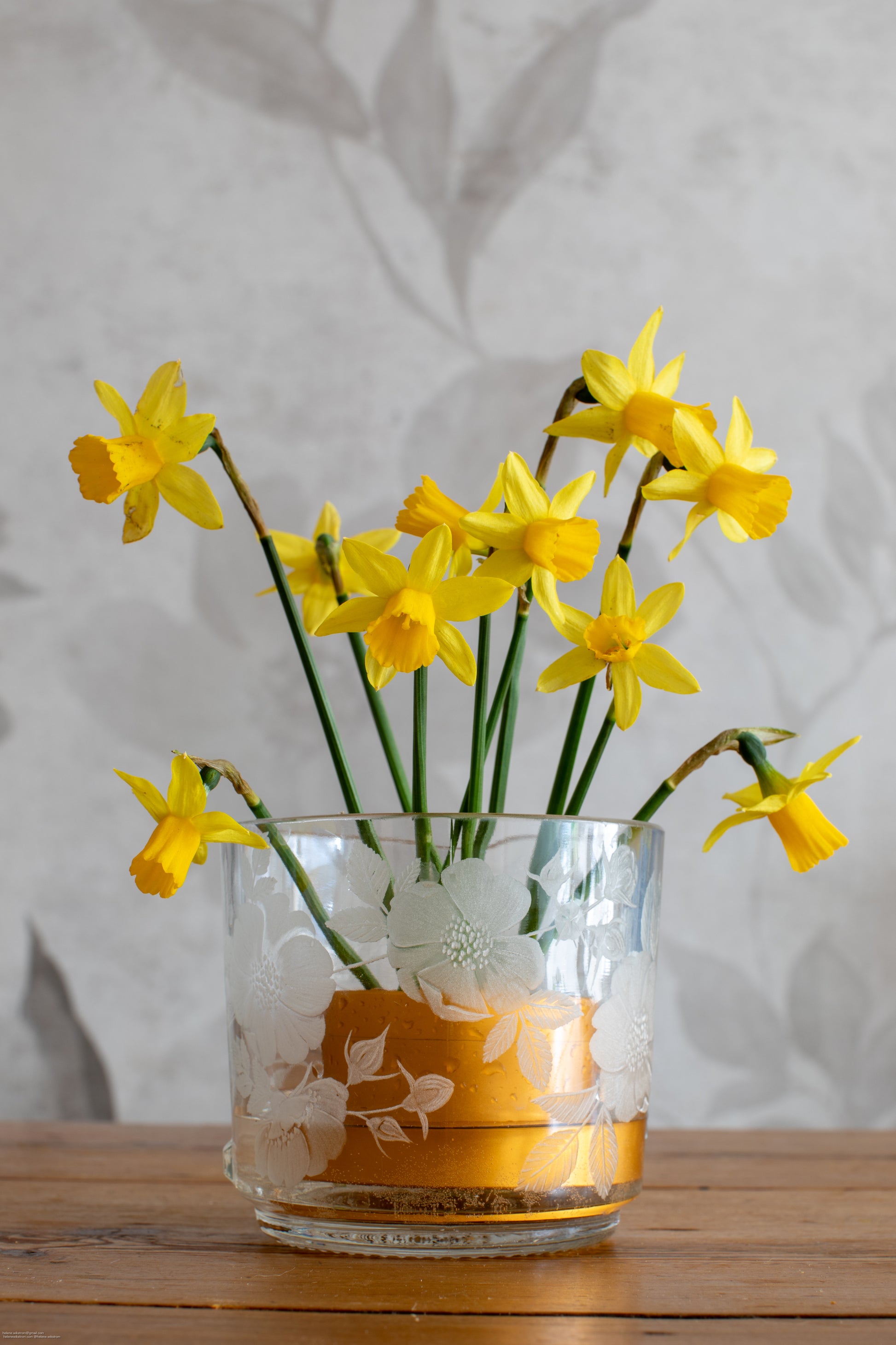 Vas med handgraverade vildrosor, som även kan användas som ljuslykta för ett blockljus eller värmeljus.