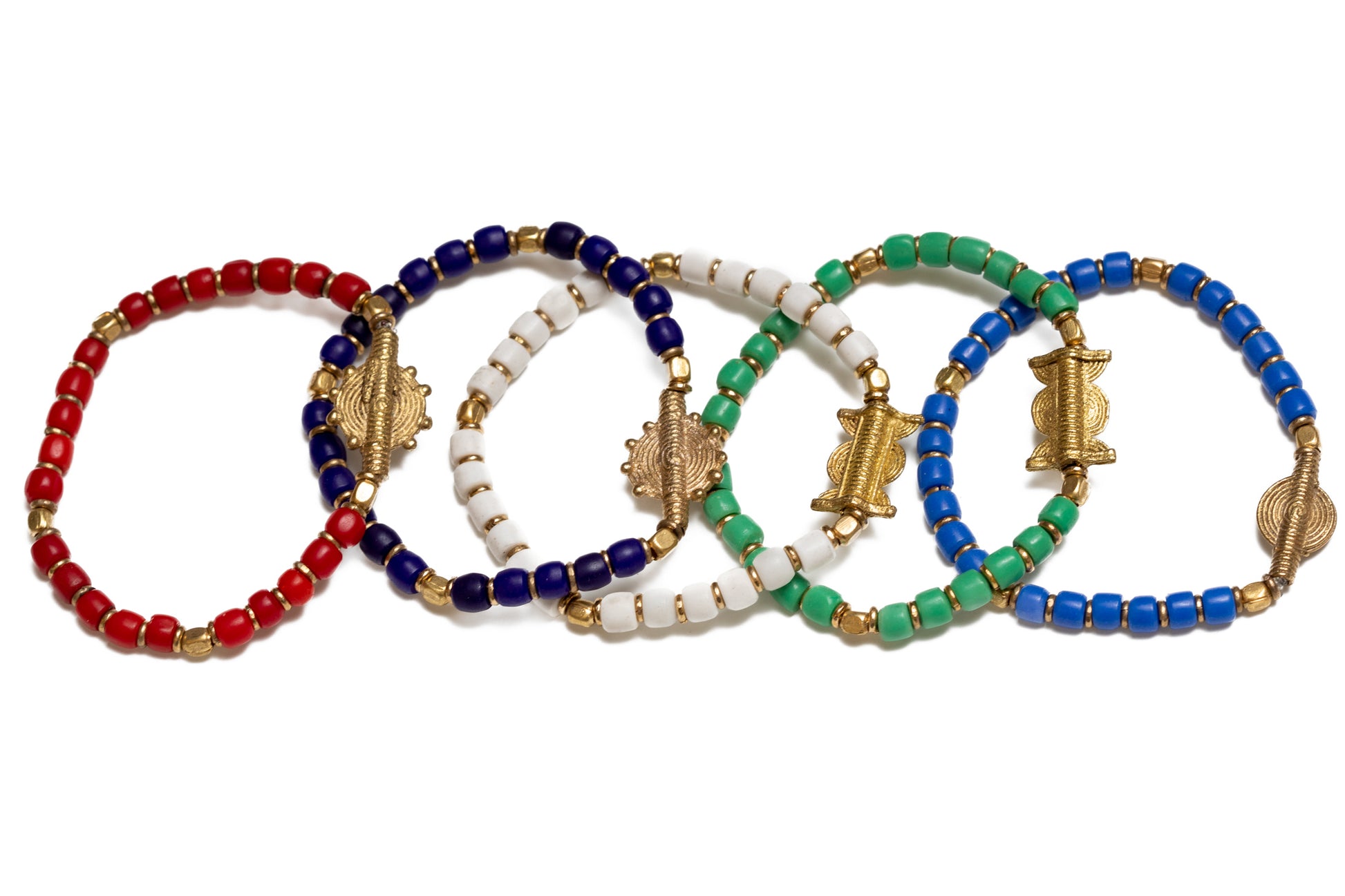 Glaspärlorna i detta armband har en fascinerande bakgrund. Ursprungligen kom de från Italien genom byteshandel och har blivit en del av de ikoniska halsband som bärs av Turkanakvinnorna i Kenya. När dessa halsband går sönder köps de upp av en kenyansk entreprenör som tvättar och återvinner pärlorna. Därefter används de av smyckesdesigners för att skapa nya smycken, som detta armband.