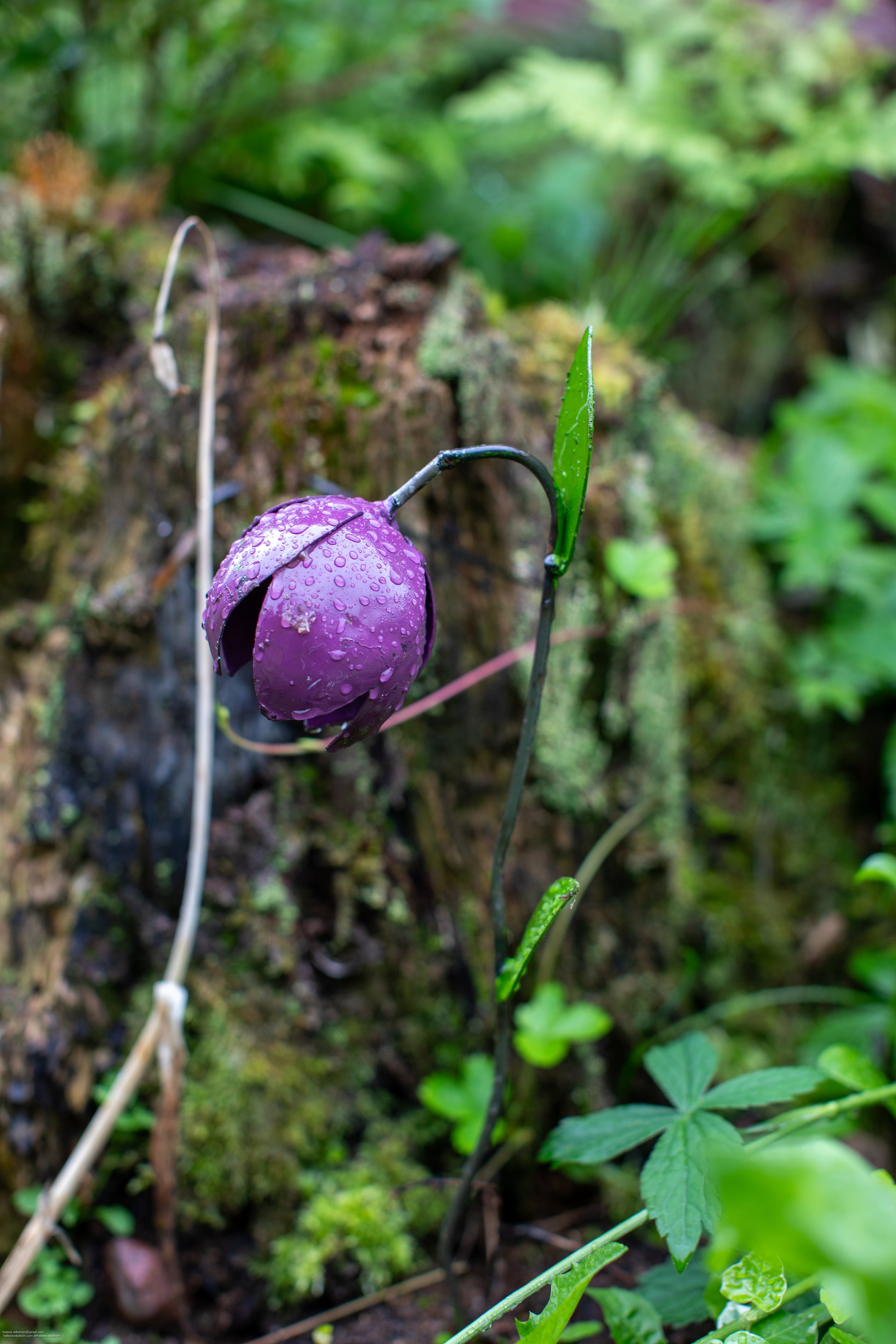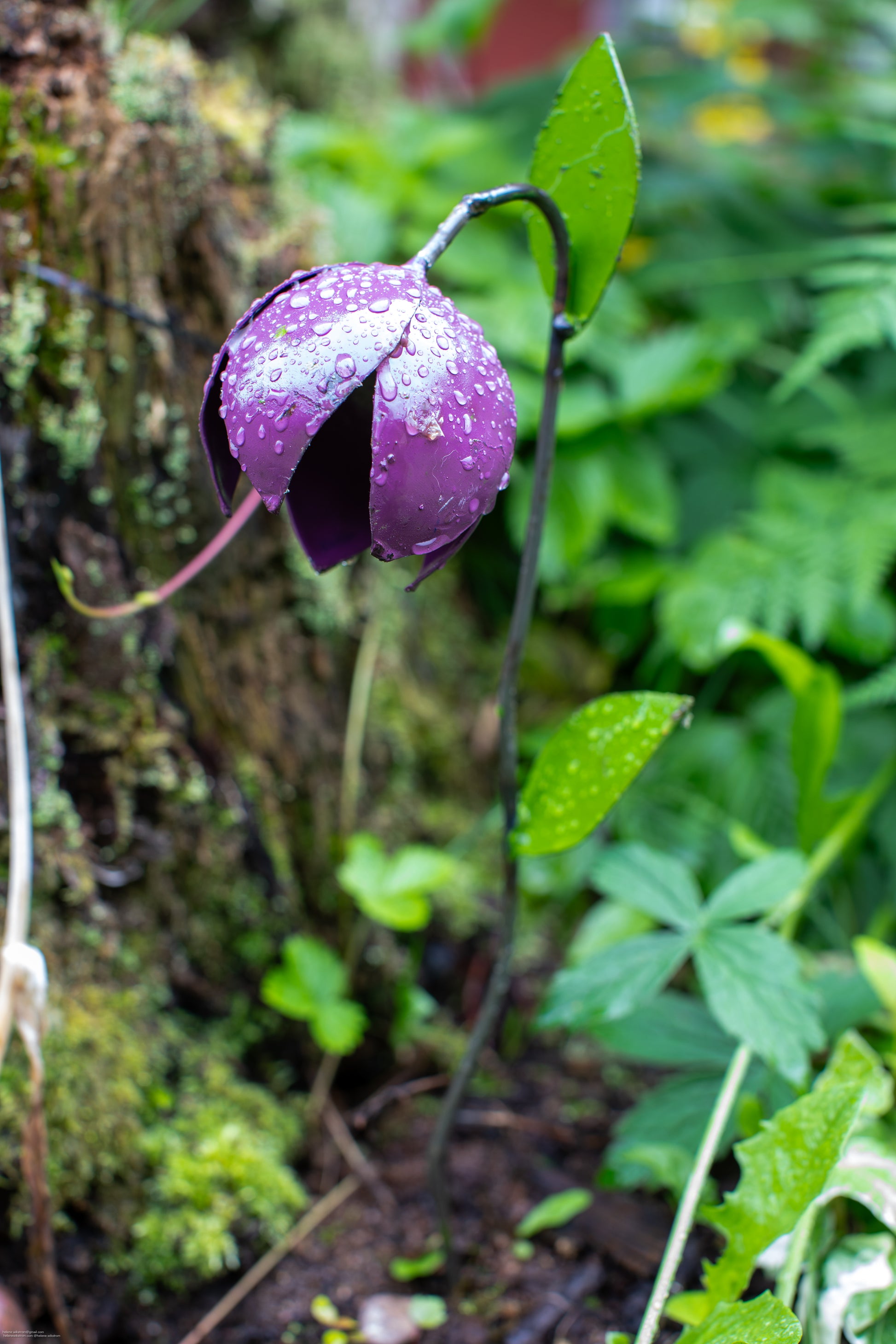 Denna handgjorda blomma, tillverkad av återvunnen metall, passar utmärkt i rabatten, på balkongen eller som en inomhusdekoration i en kruka. Den kan även användas som stöd för mindre växter. En idealisk present att ta med!