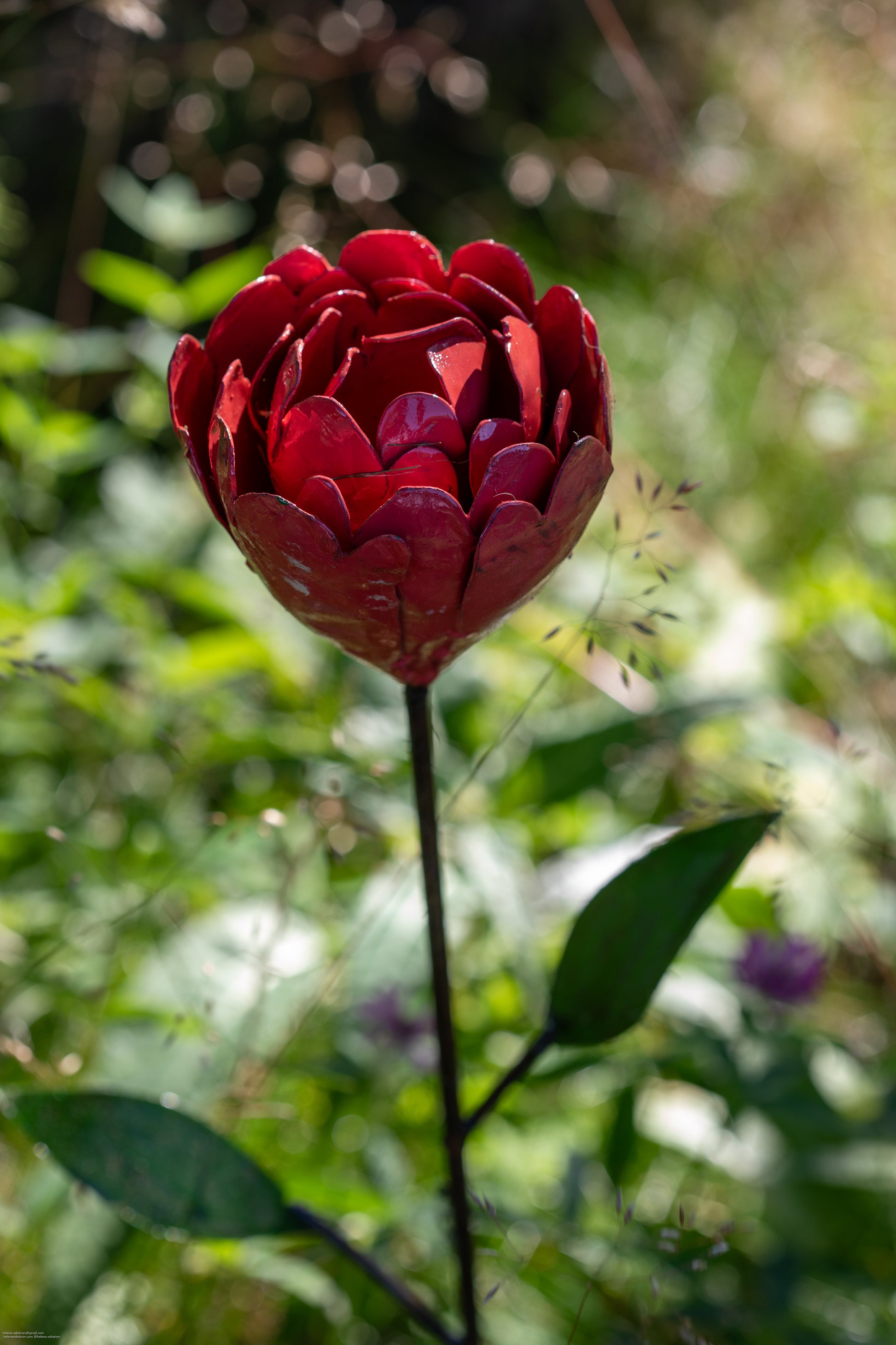 Handgjord blomma av återvunnen metall.