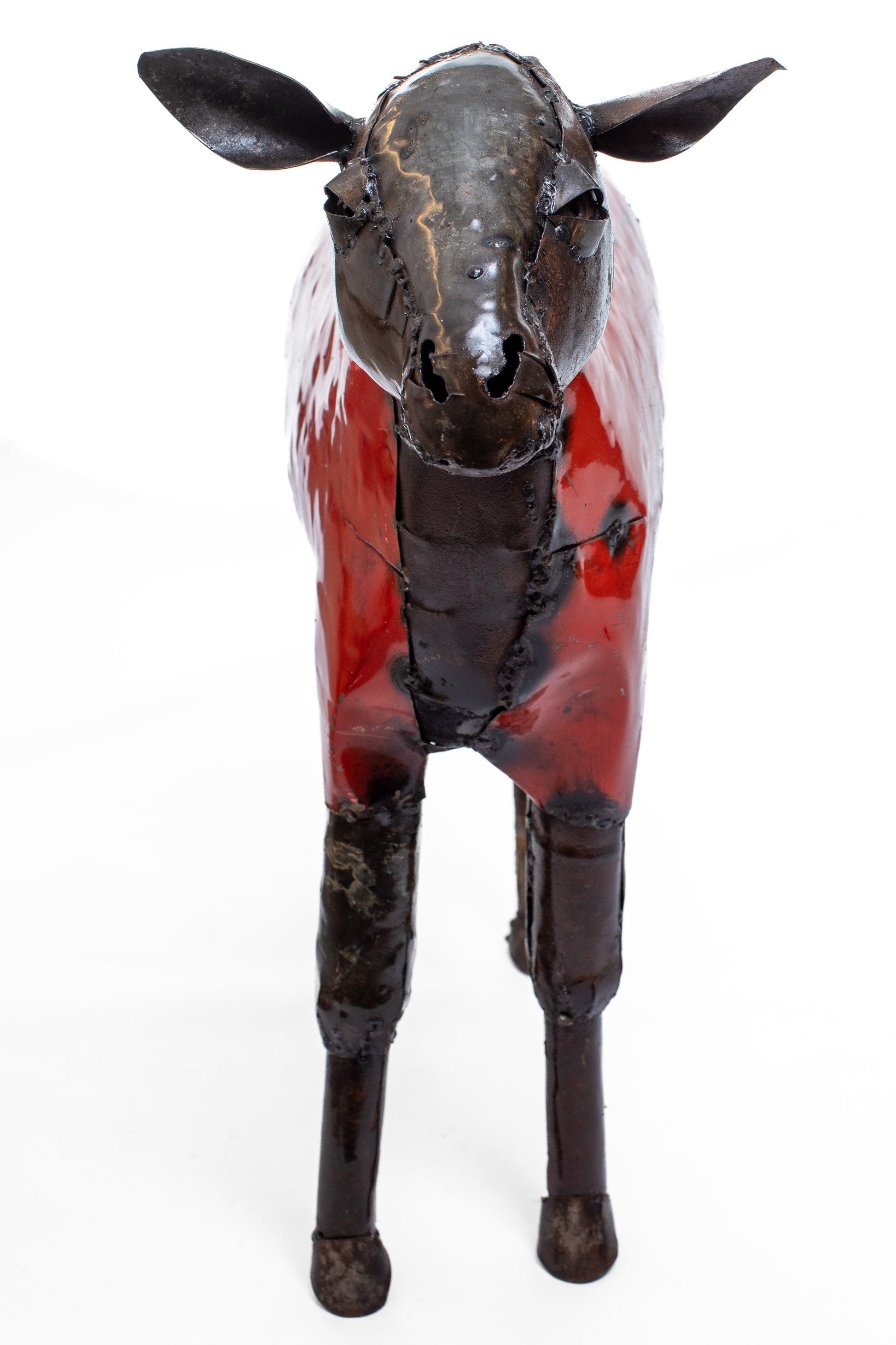 Statyn är svetsad och sedan lackad och passar både inomhus och utomhus. Underhåll den med till exempel rå linolja för att undvika rostbildning.