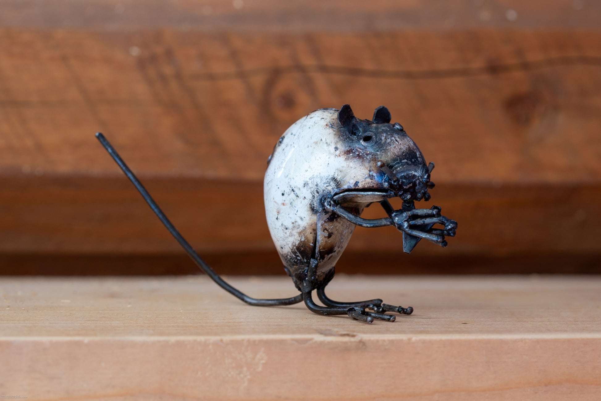 Musen är svetsad och sedan lackad. Underhåll den med till exempel rå linolja för att undvika rostbildning.