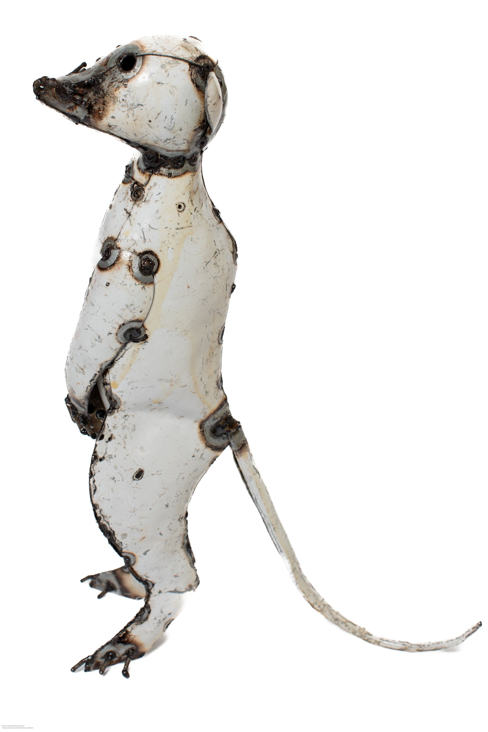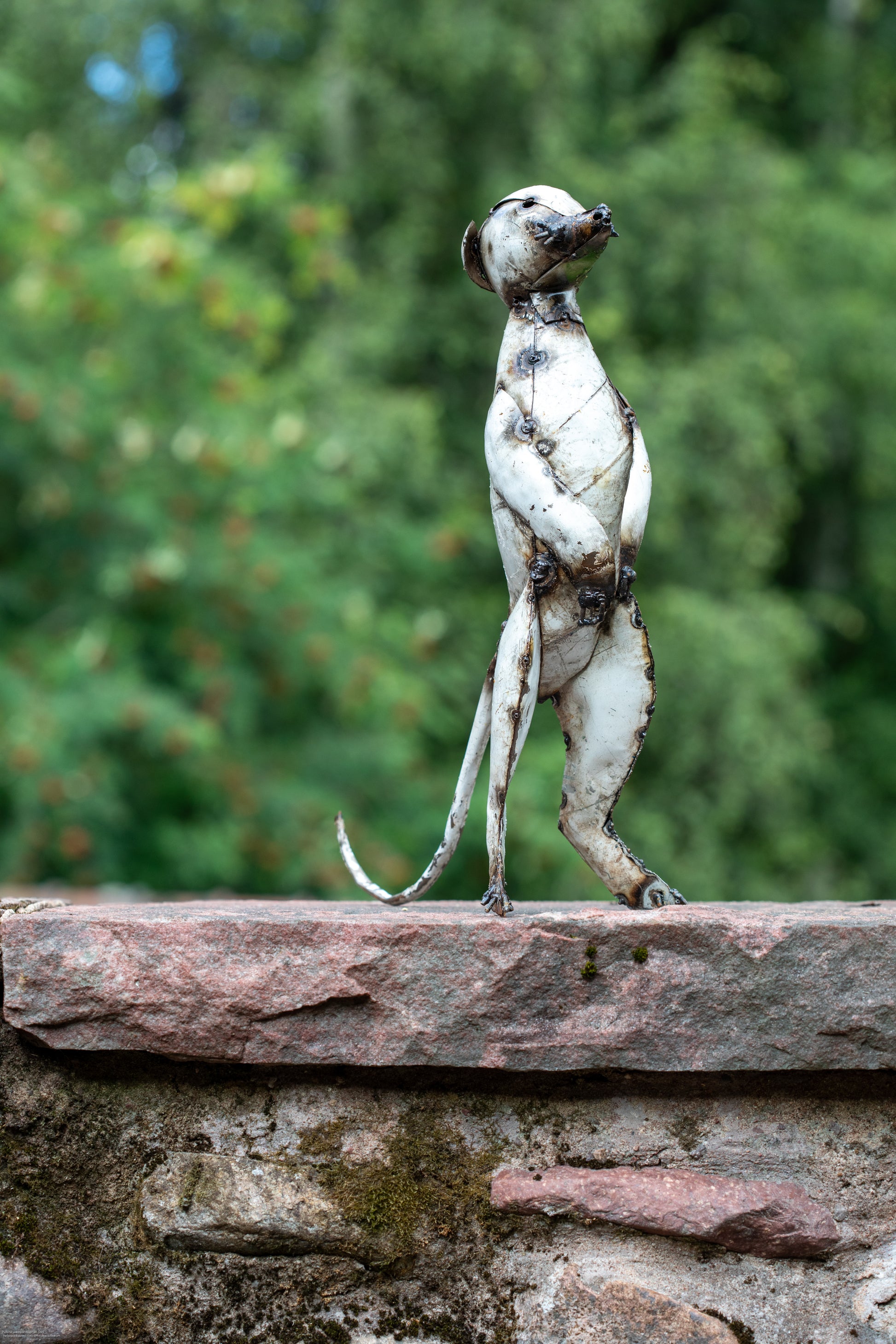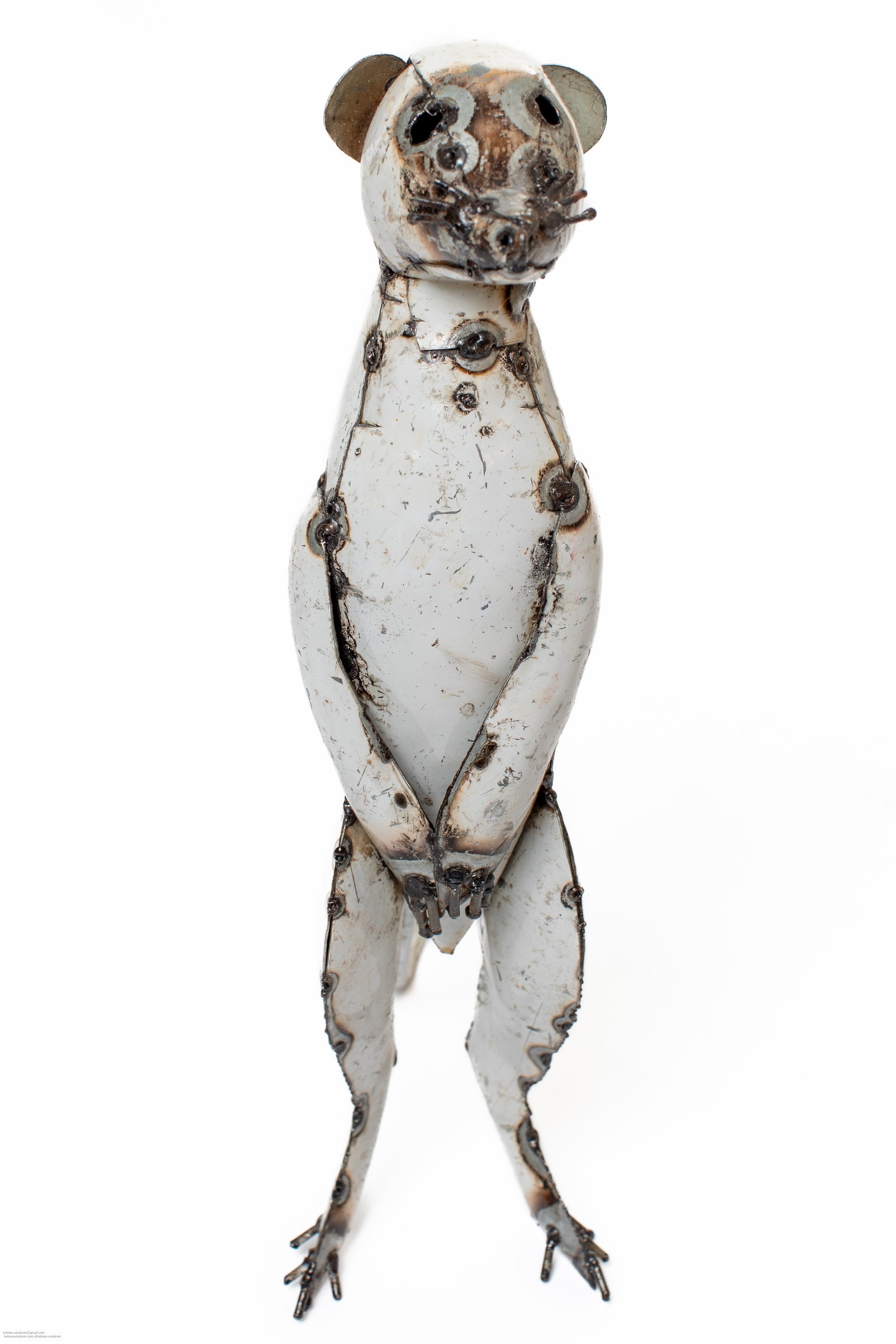 Handgjord surikat av återvunnen metall som passar både inomhus och som trädgårdskonst eller balkongkonst.